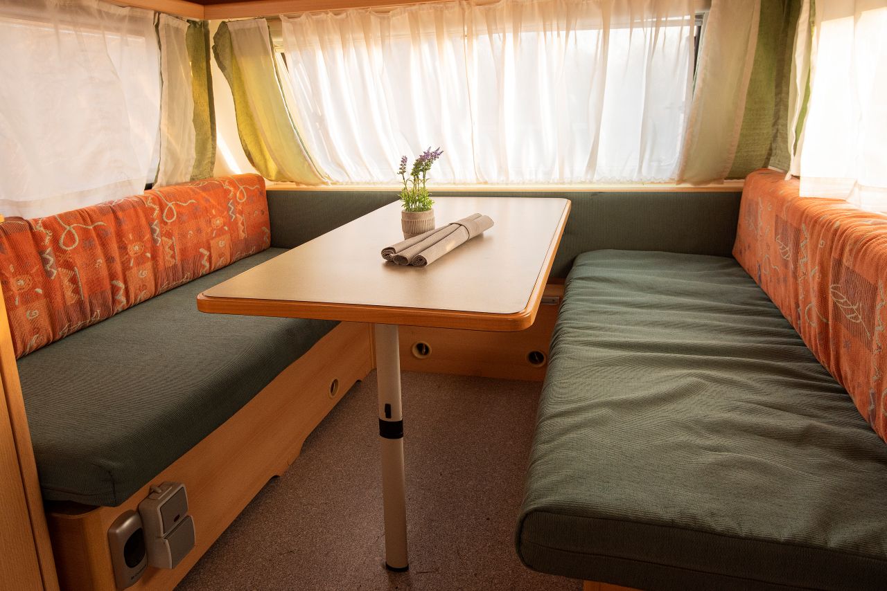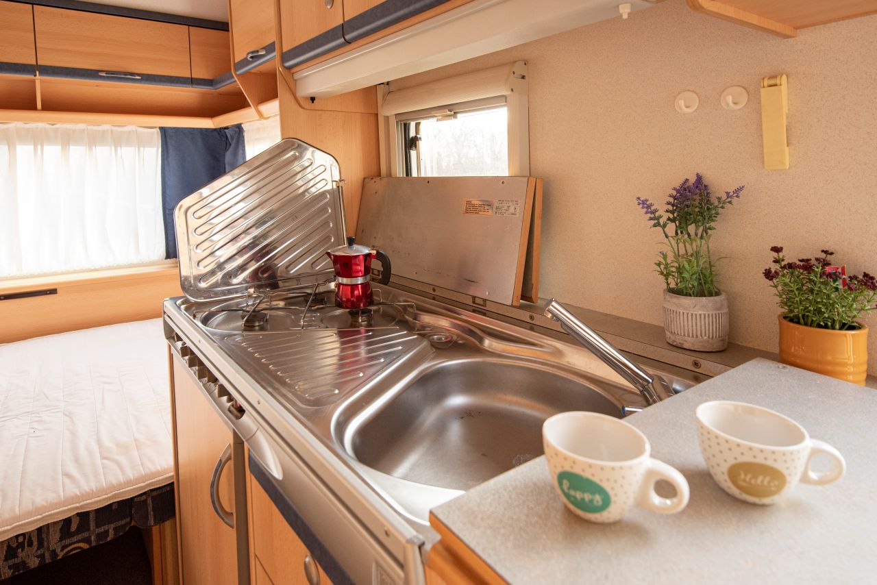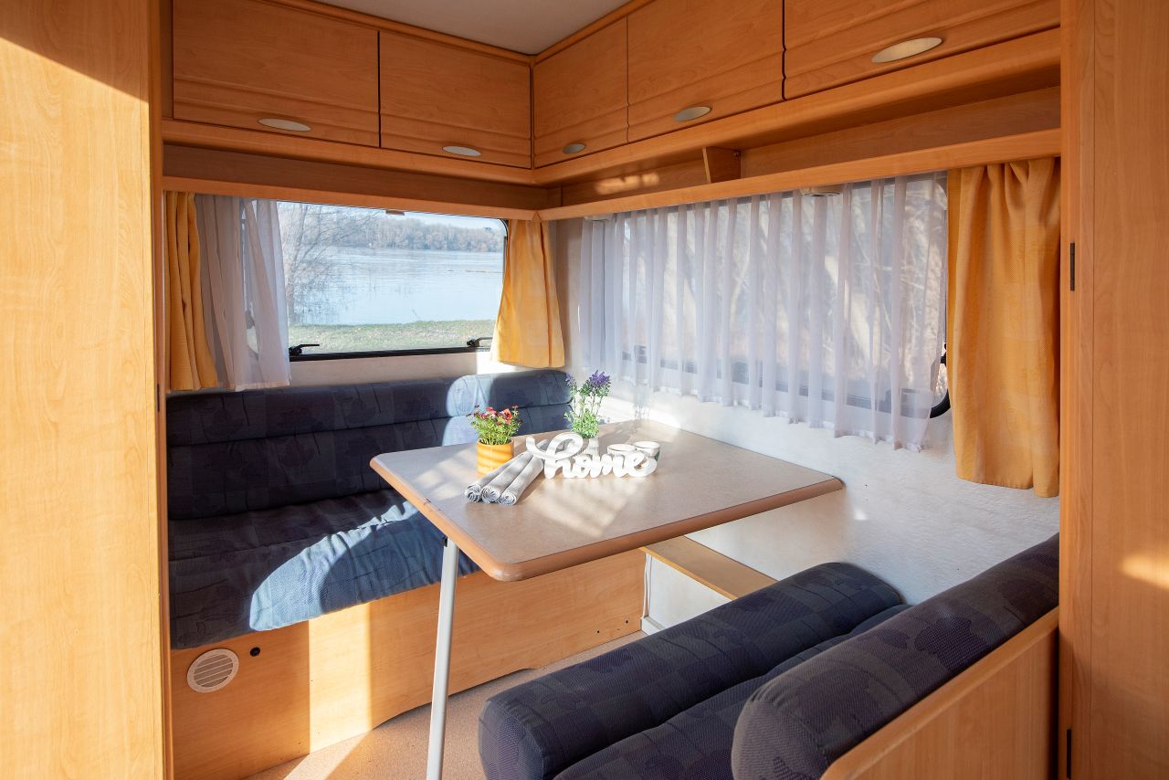 Linda, az apró lakókocsi méretei ellenére akár 4 felnőttet is teljesen ki tud szolgálni. A berendezés minden szükségletet kielégít, hiszen az alapfelszereltség már önmagában is elég az otthonos légkörhöz.