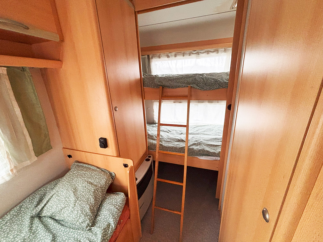 - Térelválasztó: van, a hátsó emeletes ágy előtt